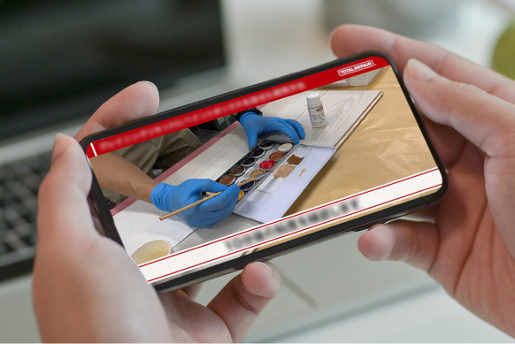 トータルリペアFCでは、リペア専門家監修のオリジナル映像教材が24時間閲覧可能。技術的な疑問から営業ノウハウまで、現場での困りごとをその場で確認できます。