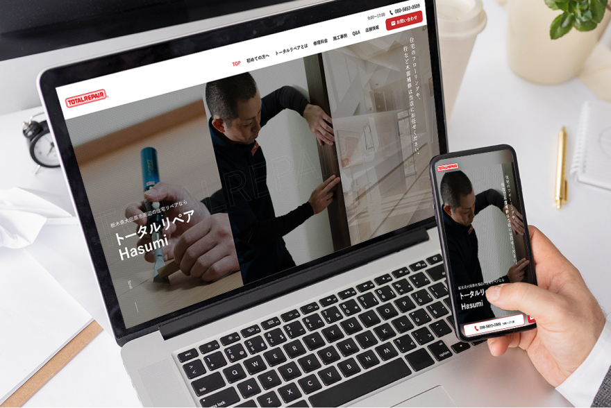 トータルリペアFCでは、本部が高品質な専用WEBサイトを制作。長年の運用実績を持つ信頼性の高いドメインを活用するため、検索エンジンでの評価も期待できます。加盟店様が、技術習得と店舗運営に専念できる環境を整え、クオリティにこだわったWEB戦略で、ビジネスの第一歩を力強くサポートします。