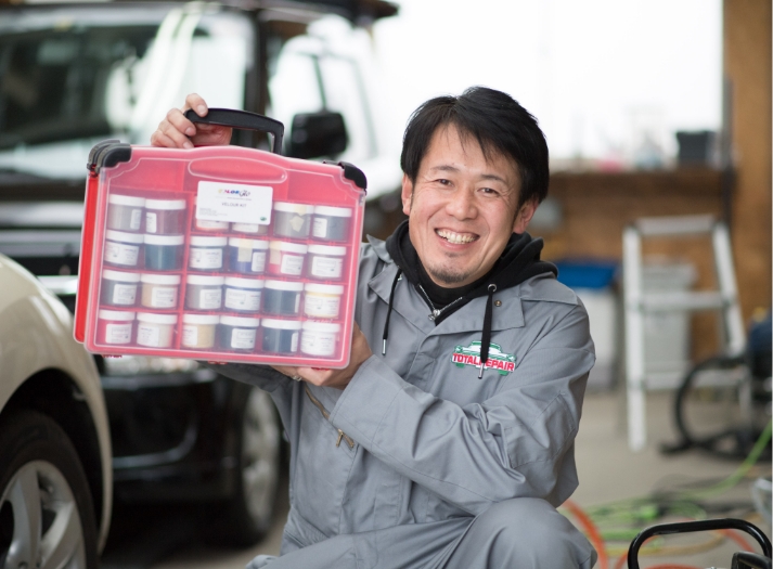 - 開業前研修では、自動車や住宅、家具、革製品など様々なモノの傷・劣化を補修する5つの技術から、どの技術を身に付けるか選択していただけます。複数の技術を組み合わせて習得していただくことも可能です。研修期間は身に付ける技術の種類や数によって異なりますので、詳しくはお問い合わせください。