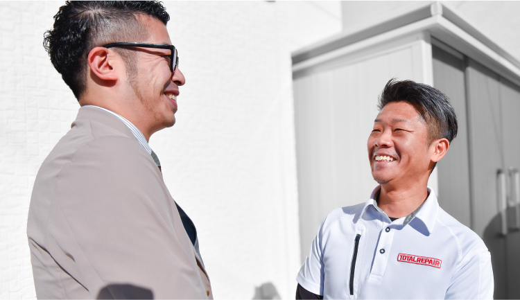 トータルリペアでは、加盟店様に営業の負担をかけないよう、本部が案件紹介部門を強化しています。これにより、他社にはない安心感を提供し、仕事が途切れるリスクを軽減するサポート体制が整っています。独立後も加盟店様が安定したビジネスを運営できるよう、全力でバックアップいたします。