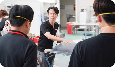 板金塗装の経験はありましたが、前職で使っていたのは有機溶剤だったため、水性補修塗料は初めてで少し戸惑いました。けれど、講習では未経験者向けに基礎から丁寧に教えてもらえるので、すぐに慣れました。経験者にとっても基礎を振り返る良い機会になりました。開業後の営業の面では、経験はなく不安もありました。ですが、本部アドバイザーに営業同行してもらい、現場でのやり取りや提案の流れを直接学ぶことで、自信を持って営業できるようになりました。トータルリペアのブランド力も後押しとなり、仕事につながりやすさを実感しています。実際に開業後は予想以上にニーズが多く、挨拶に伺うだけで数台まとめて依頼をいただくこともあり、その場で発注につながるケースもありました。