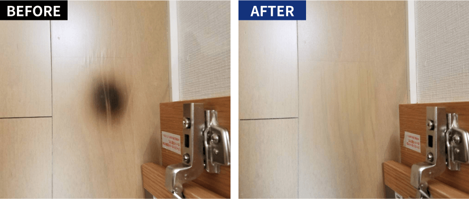 住宅や家具の木部の補修を行うリペアです。フローリングや柱、ドアなど、住宅の様々な箇所に使われる木材の傷や欠損、凹みを修復・復元します。その他にも、アルミや樹脂などのサッシ補修技術も含まれます。