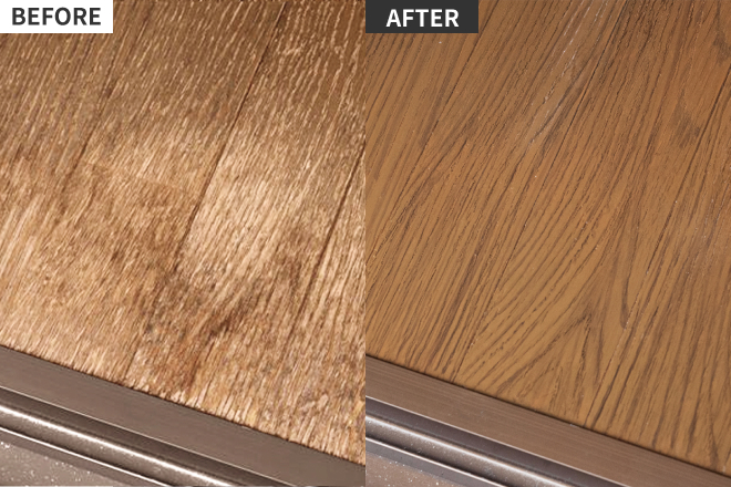 住宅や家具の木部の補修を行うリペアです。フローリングや柱、ドアなど、住宅の様々な箇所に使われる木材の傷や欠損、凹みを修復・復元します。その他にも、アルミや樹脂などのサッシ補修技術も含まれます。