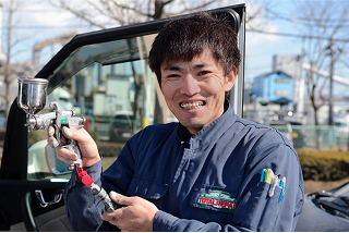 自動車の外装についた小傷を修復するリペア技術です。部品脱着や交換を必要とせず、お客様のもとにお伺いしてその場でクイックに施工する、新しい板金サービスです。環境と健康に配慮した水性補修塗料を使用しています。